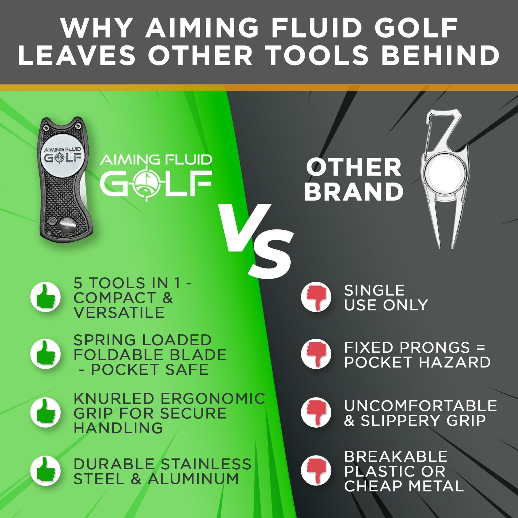 Aiming Fluid Premium Foldable Divot Tool | Metal Switchblade Repair Tool